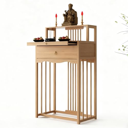 Prayer Altar, Personal Shrine Altar Table, Bamboo Buddha Niche Altar Cabinet, Meditation Table Chinese Cabinet Altars with Drawer, Open Offering Tables for Prayers Divination