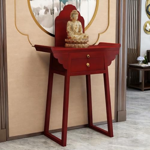 RTTZBOZ Wood Witch Buddhist Altar Table, Pooja Table with Storage, High Altars Shelf with Back Panel for Meditation,Prayers, Rituals, Divination,(Red)