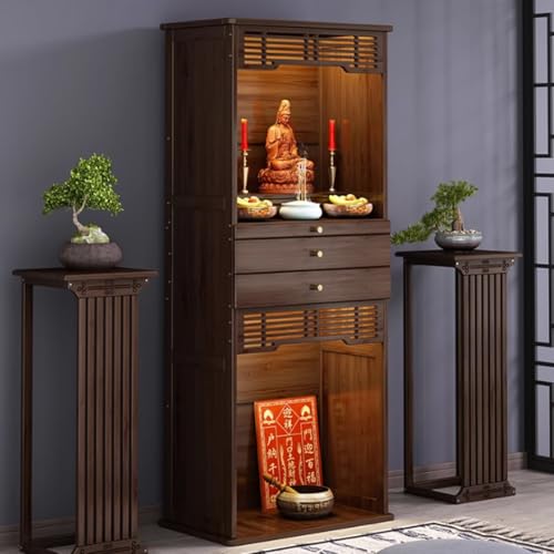 KAFHGEIN Buddhist Shrine and Altar Kit, Household Solid Wood Buddha Cabinet Niche with Drawer, Buddhist Prayer Altars Cabinets for Small Spaces, Buddha Shelf Meditation Table(Brown,70x40x120cm)