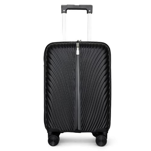 CMY Cabin 20" Carry On Suitcase Hard Shell PC+ ABS 3 Digit Combination Lock Trolley Aluminium Alloy Telescopic Handle 4 Dual Spinner Wheels Suitcases Lightweight Water Resistant (Black, 20)