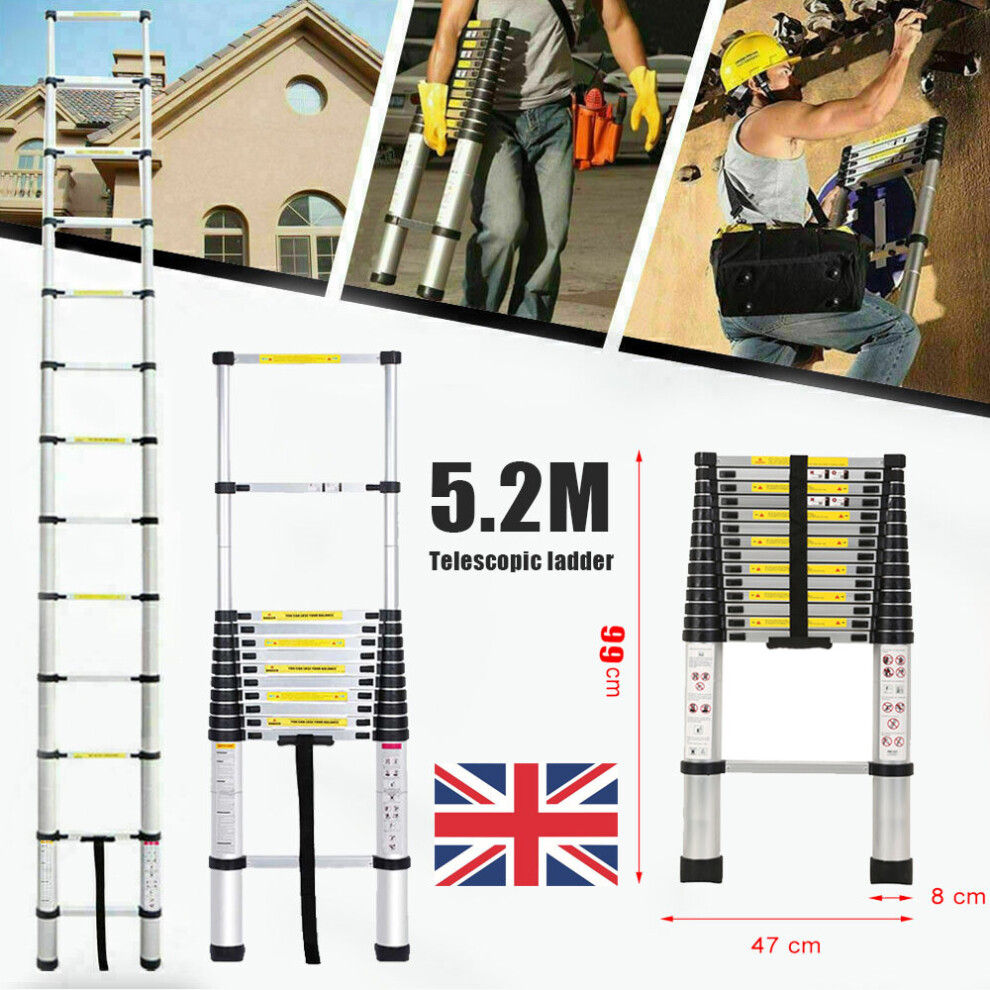 Telescopic Ladder 5.2M Extendable Step Ladders Aluminium Silver