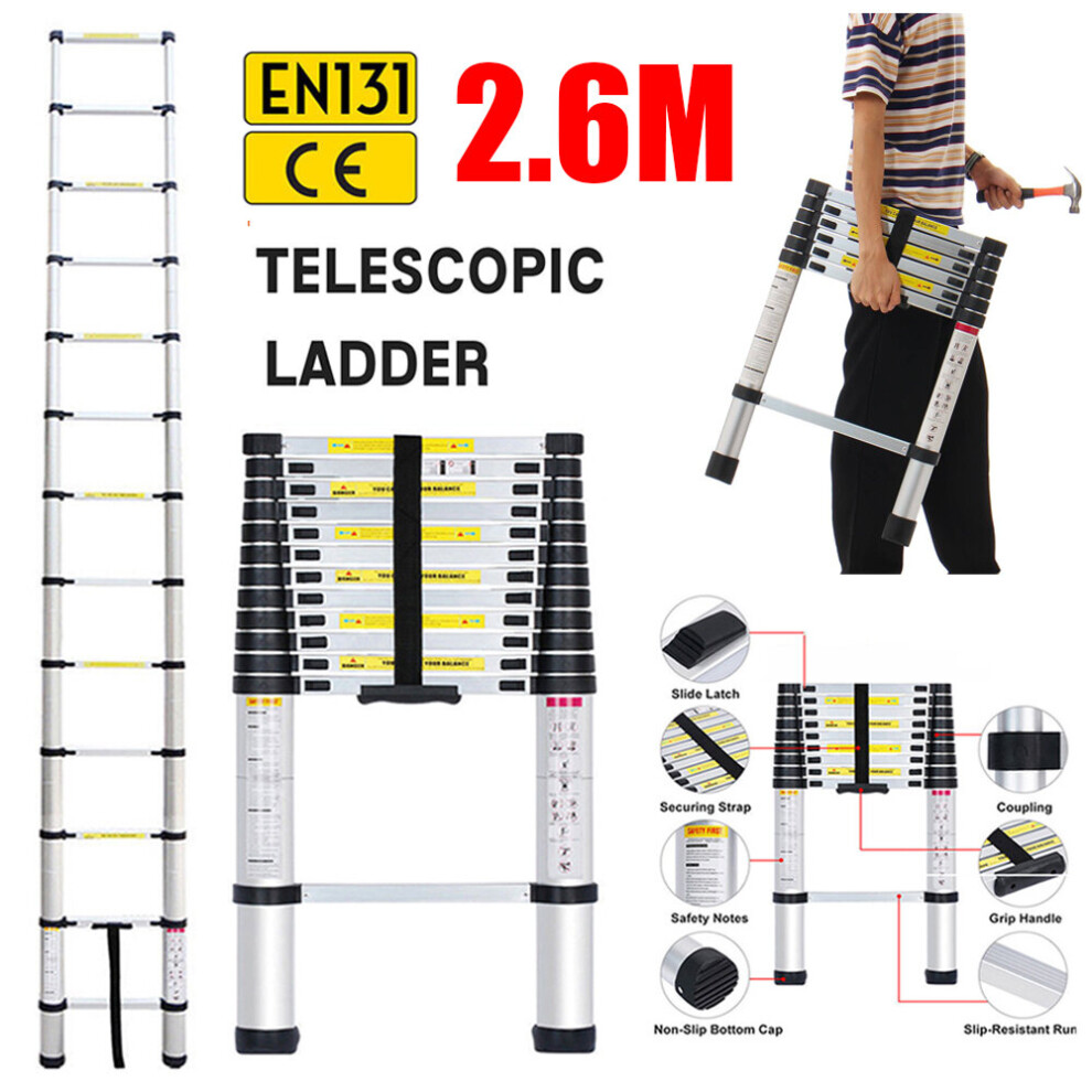 2.6M Extendable Aluminium Ladders Telescopic 9 Steps Loft Ladder