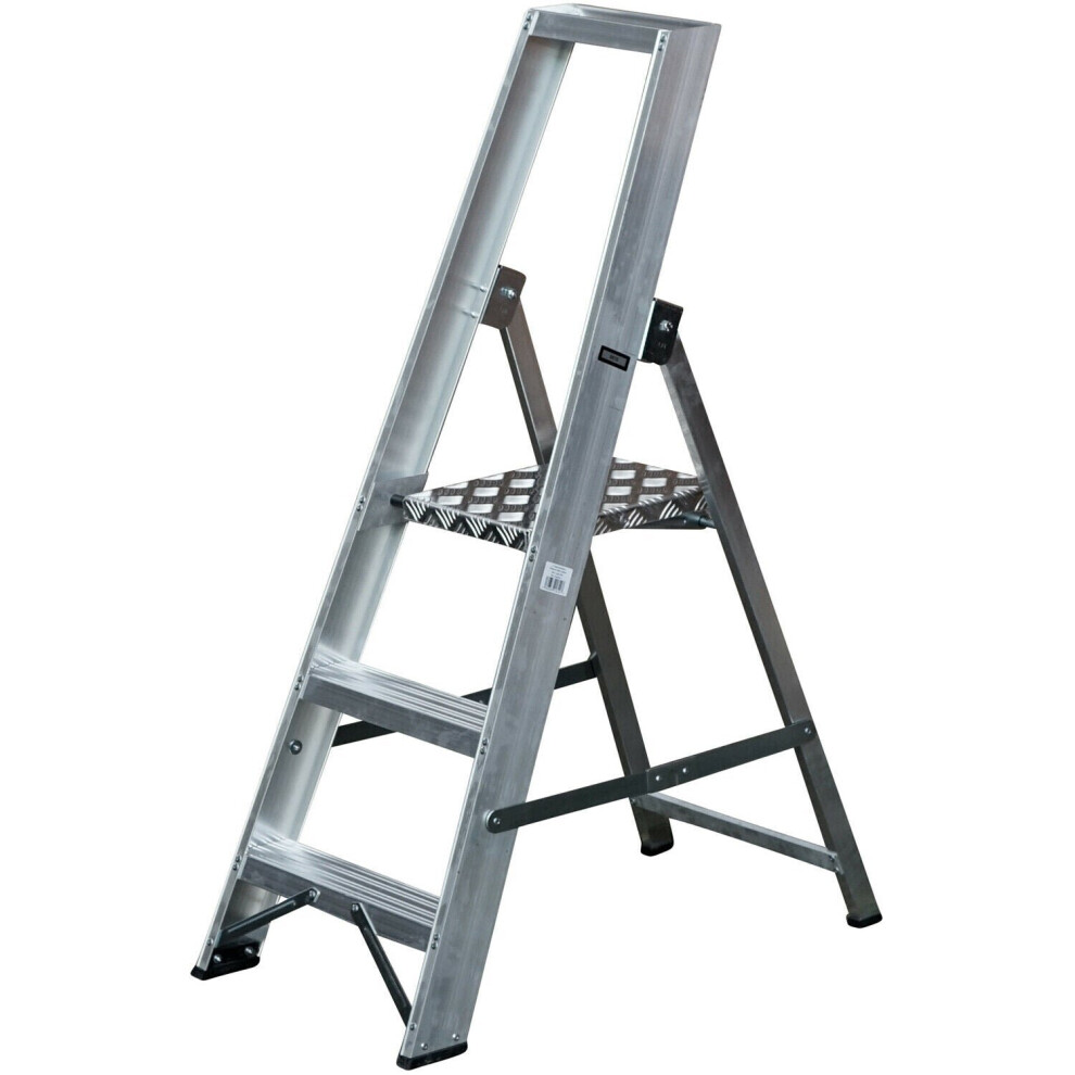 0.6m Aluminium Platform Step Ladders 3 Tread Home DIY Lightweight Metal Steps