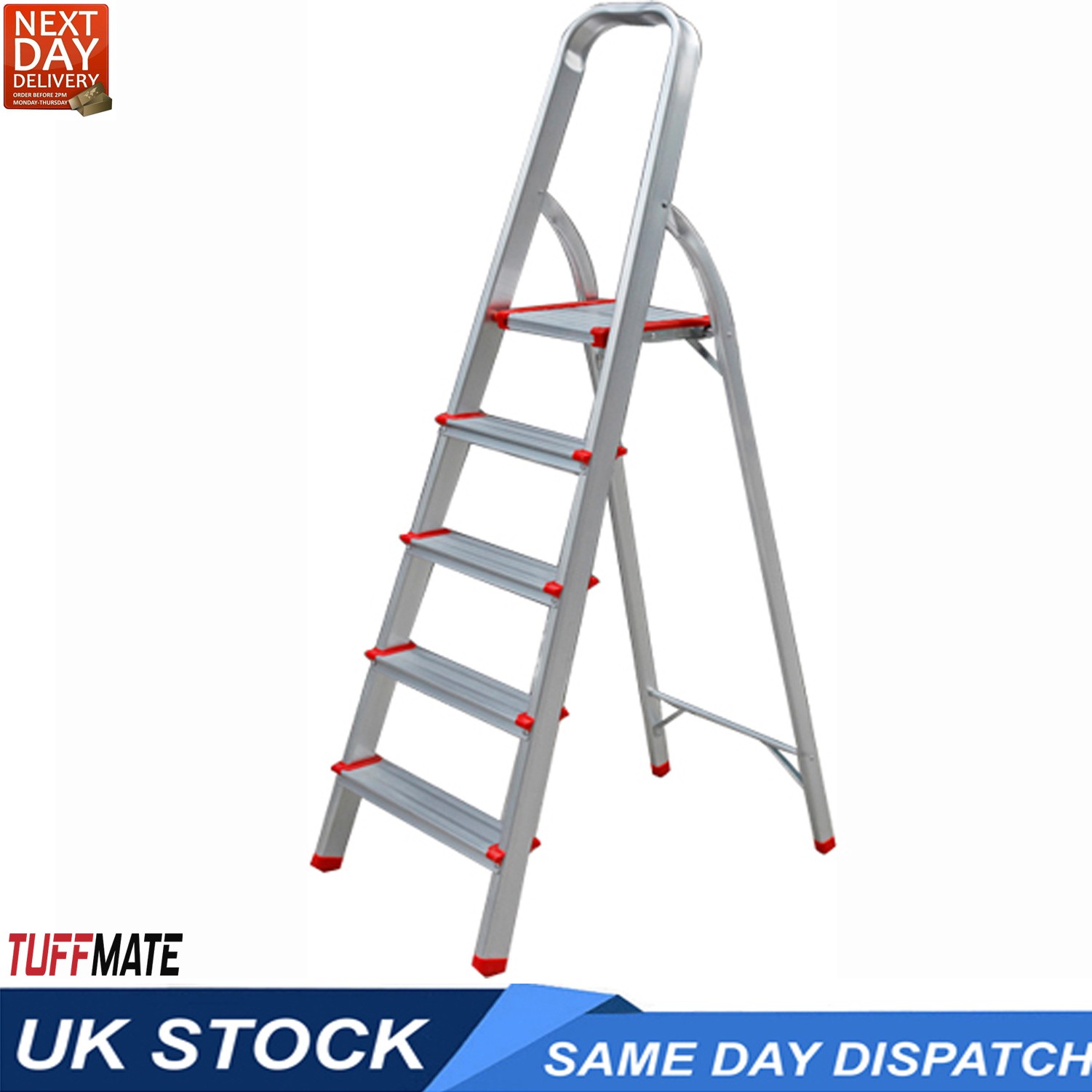 Step Ladder 5 Step Aluminium Folding Step Ladders Anti Slip Feet TUFFMATE