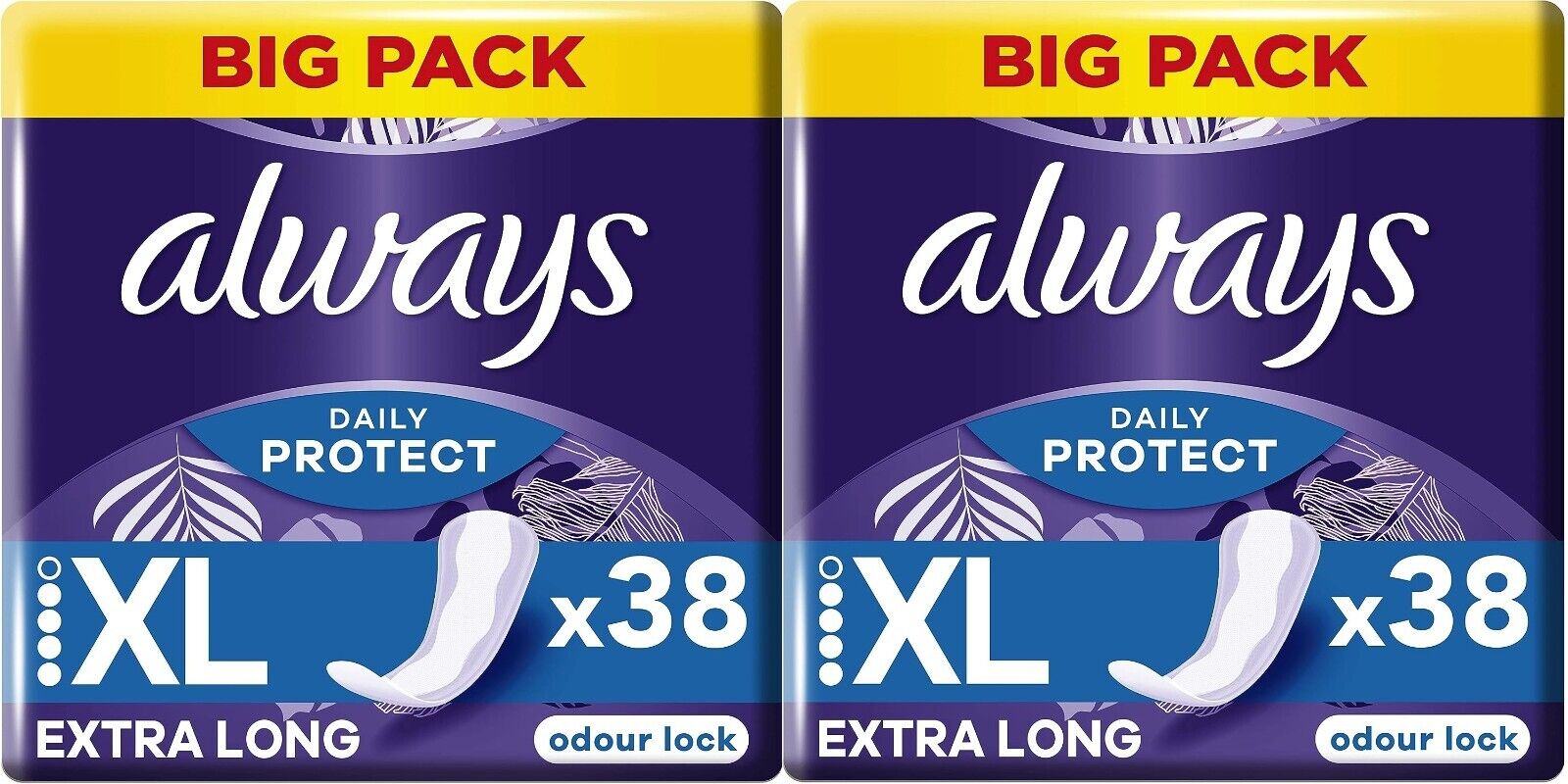 76 x Always Dailies Pantyliners Long / Ex Large, Extra Protect - Lightly Scented