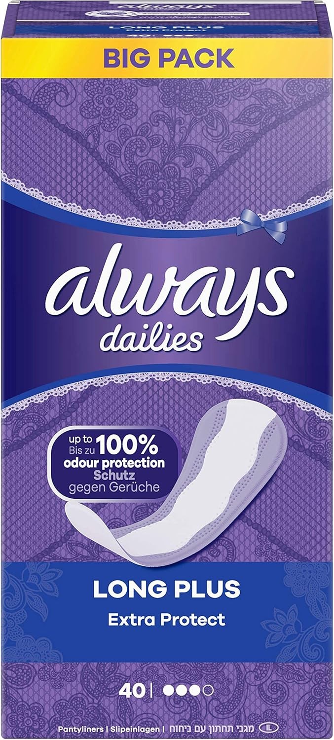 Always Dailies Women's Extra Protect Long Plus (40 Pads) Big Pack Breathab