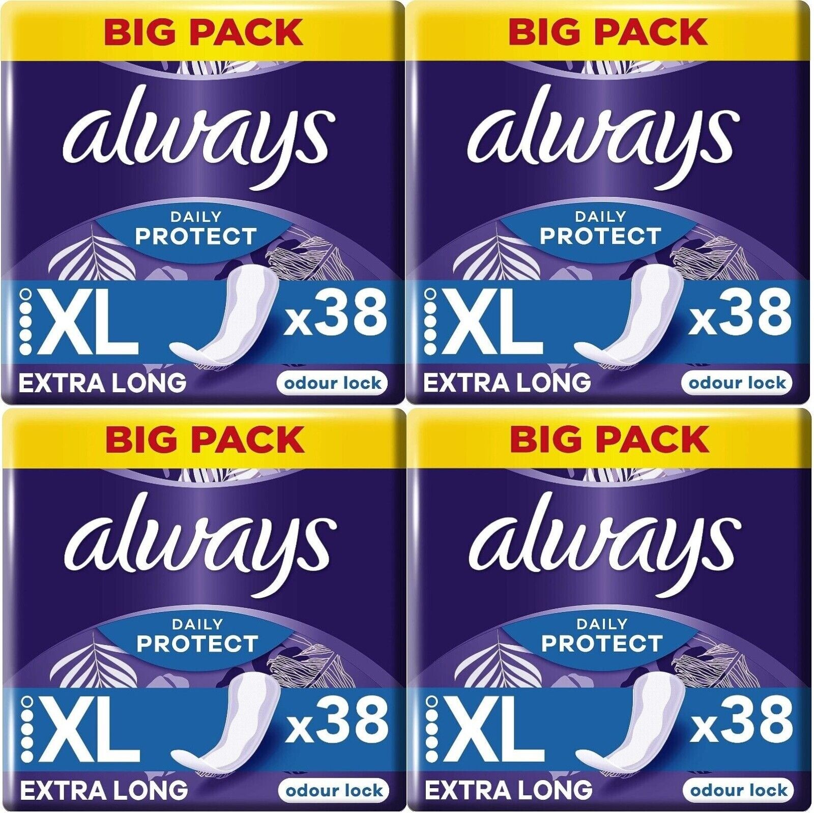 152 x Always Dailies Pantyliners Long / Ex Large Extra Protect - Lightly Scented