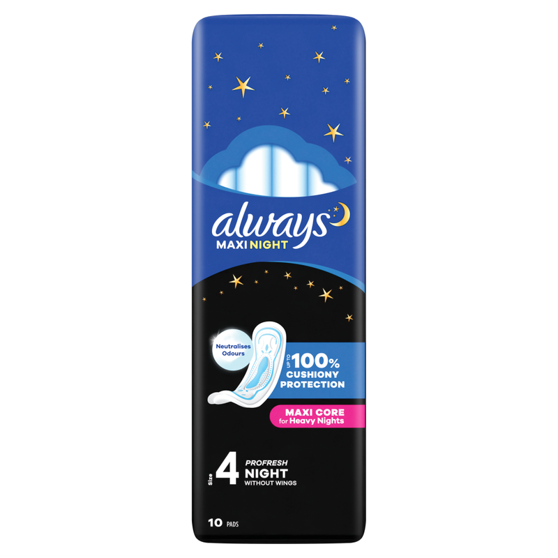Always Maxi Profresh Night Sanitary Towels (Size 4) 10 Pads