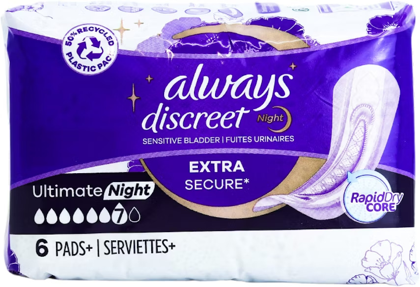 Always Discreet Incontinence Pads Women Ultimate Night 6 Pads.
