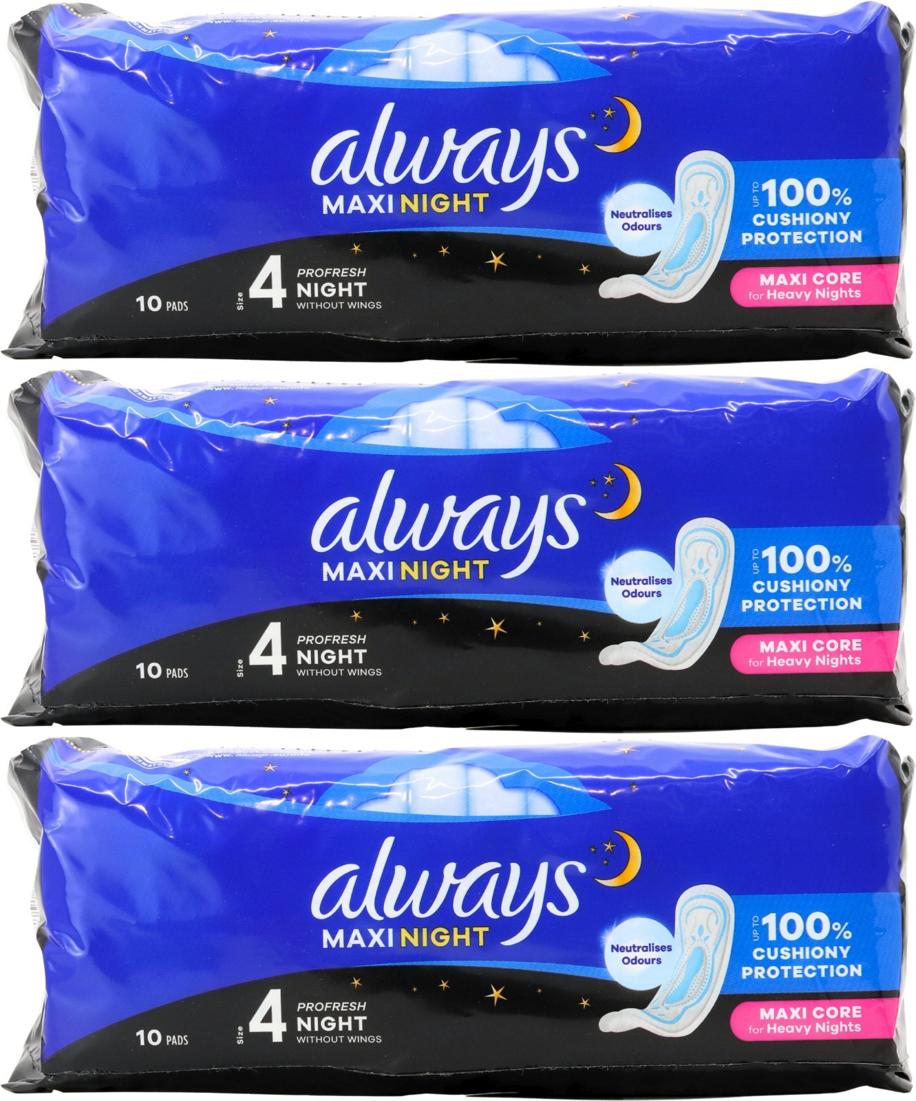 3 x Always Ultra Night Size 3 Sanitary Towels Wings 10 Pads SPECIAL OFFER.