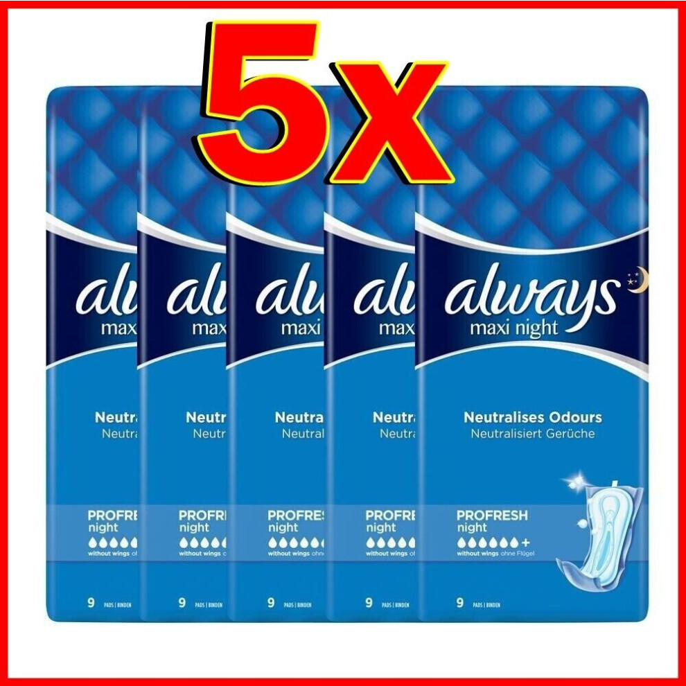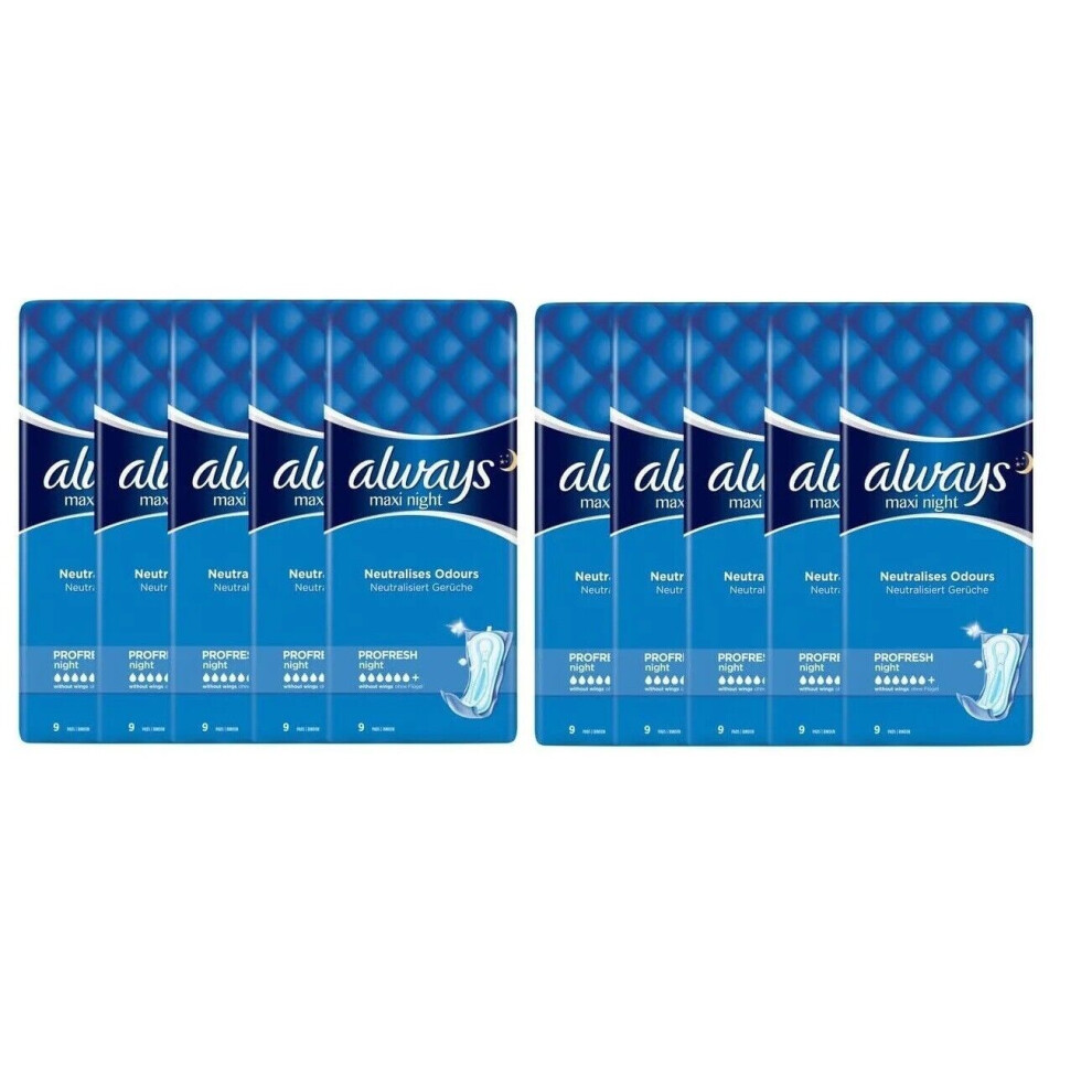 9 x Always Maxi Night Profresh Sanitary Pads - Neutralise Odours Super Absorbent