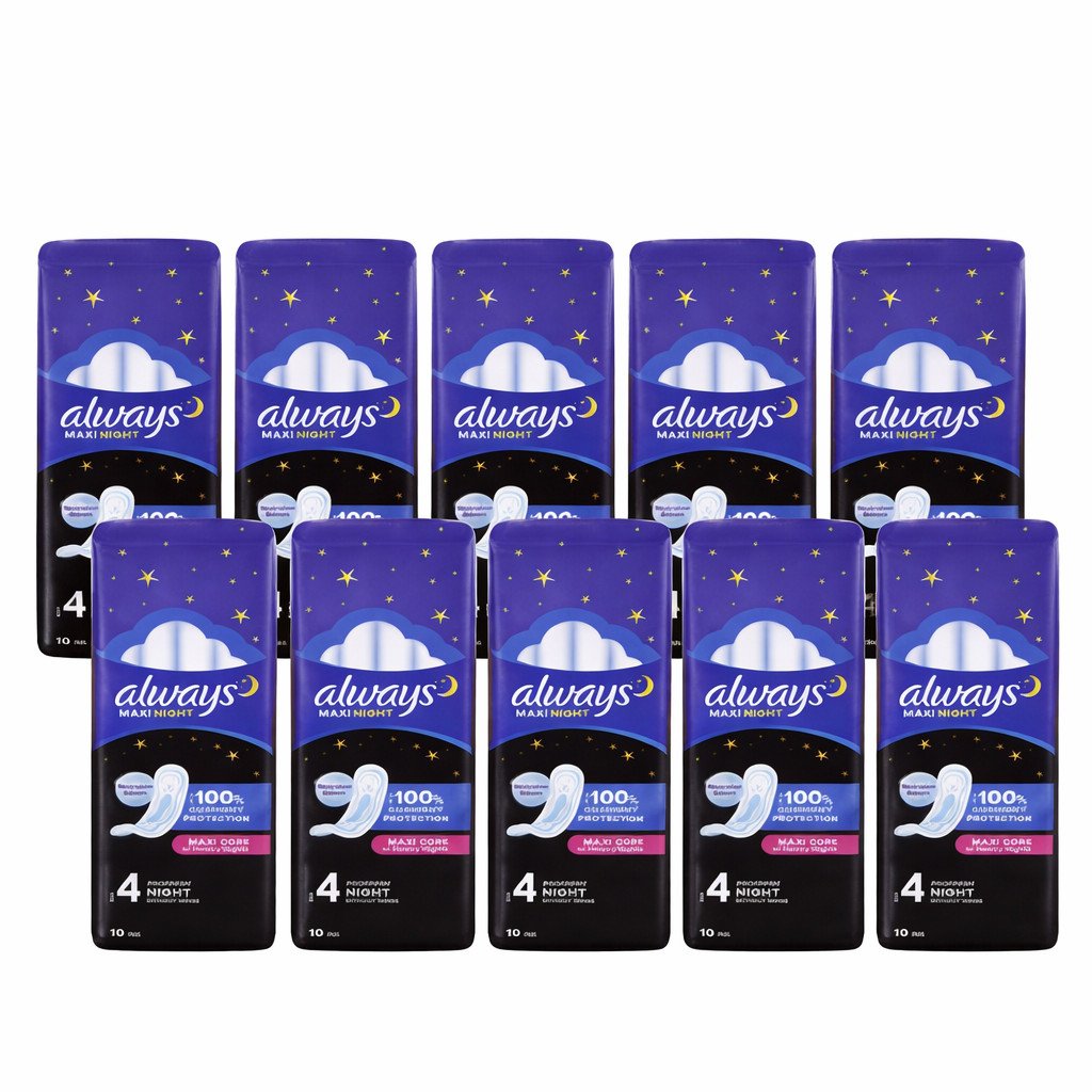 Always Maxi Profresh Night Sanitary Towels, 100 Towels (10 x 10 Packs)