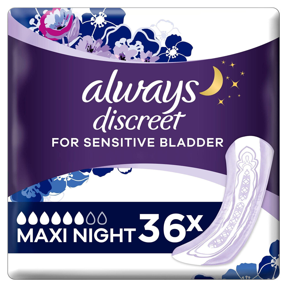 Always Discreet Incontinence Pads for Women, Maxi Night Pads, 36 Highest Absorbency Pads