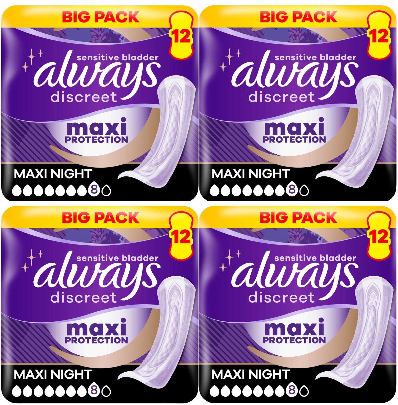 Always Discreet Maxi Night Pads x 6 for Secure Overnight Use