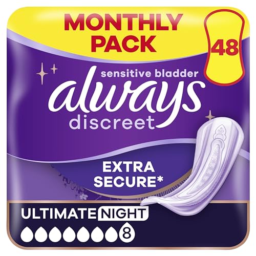 Always Discreet Incontinence Pads Women Ultimate Night 48 Count Extra Secure & Discreet