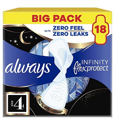 Always Infinity FlexProtect Sanitary Towels Night Extra Size 4 With Wings 18 Pads Unscented