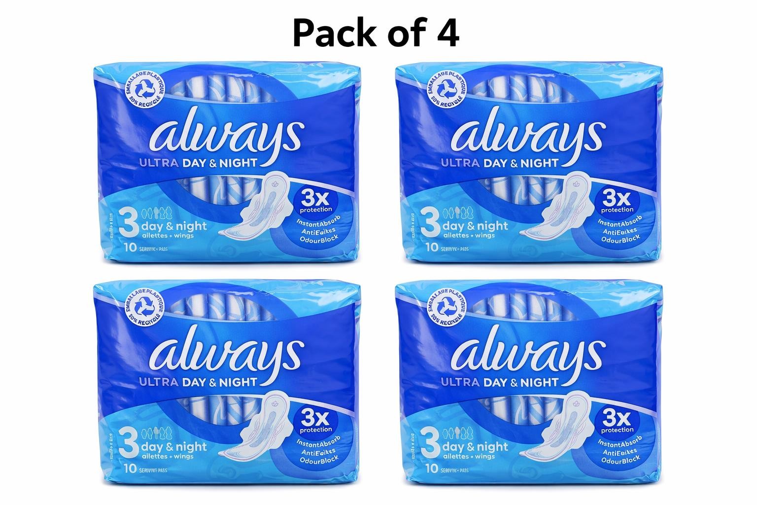 Always Ultra Day And Night Sanitary Pads With Wings Size 3 Packet x9