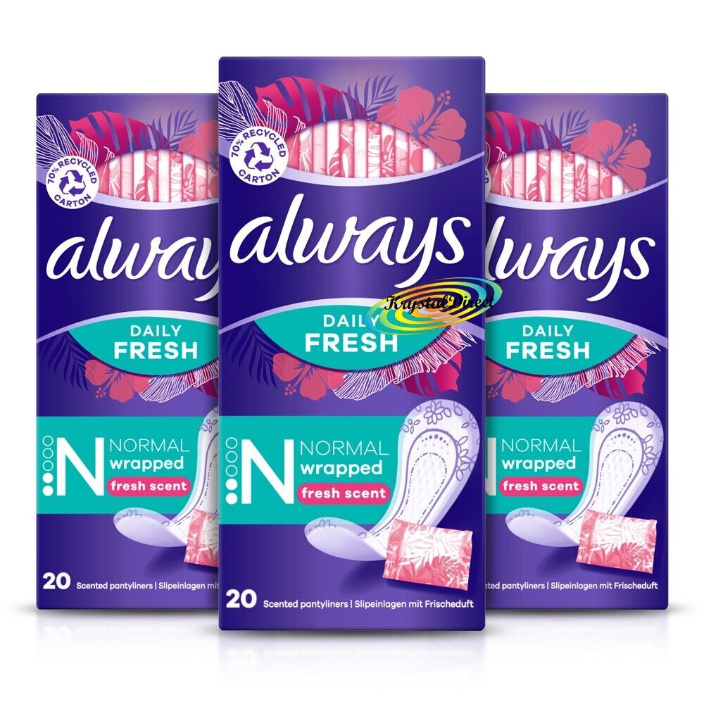 3x Always Daily 20 Fresh Normal Wrapped Fresh Scented Panty Liners