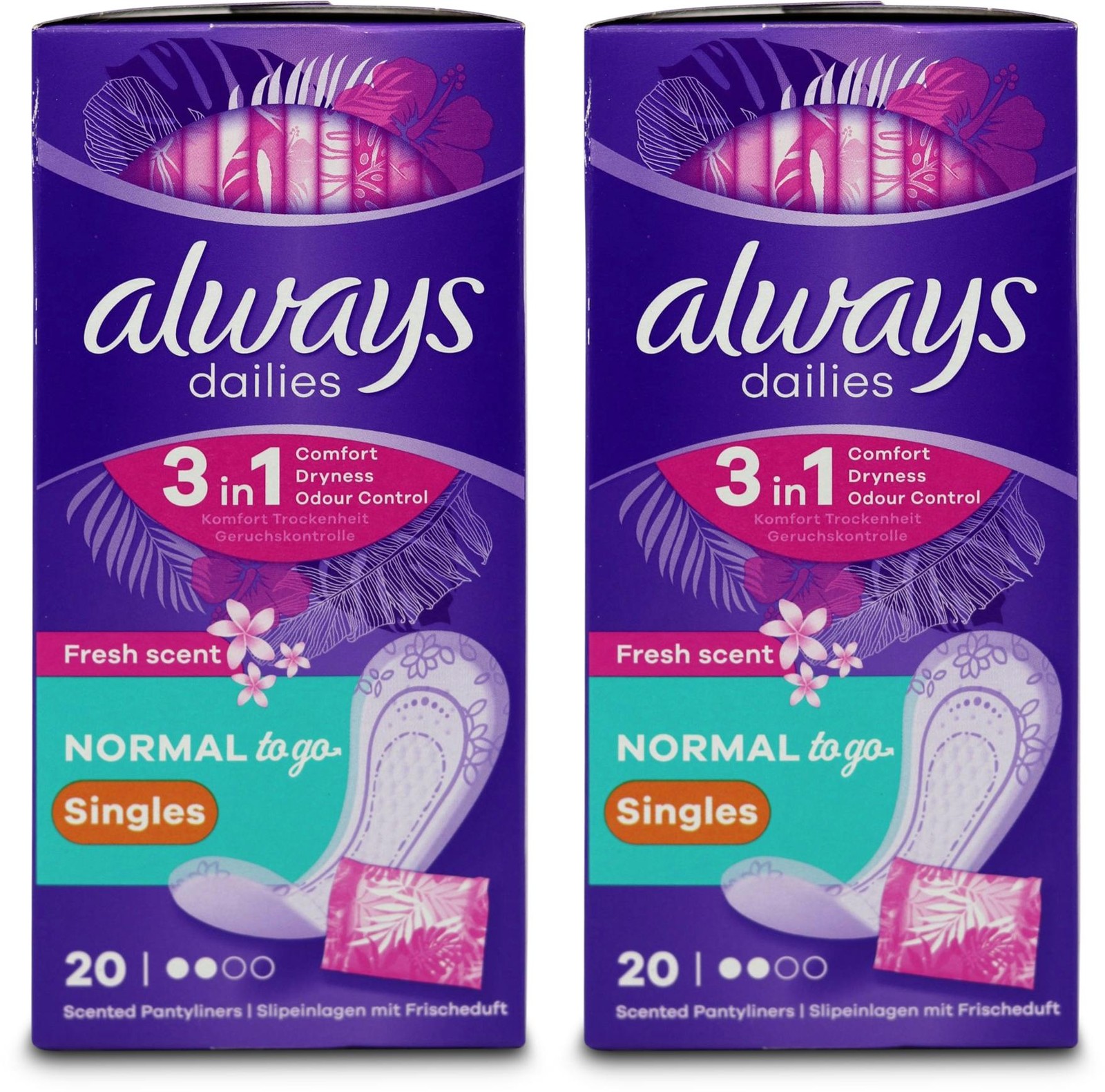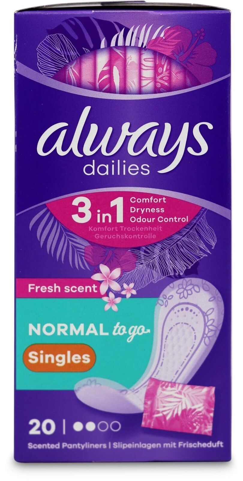 Always Dailies Singles Normal To Go Panty Liners Fresh x 20