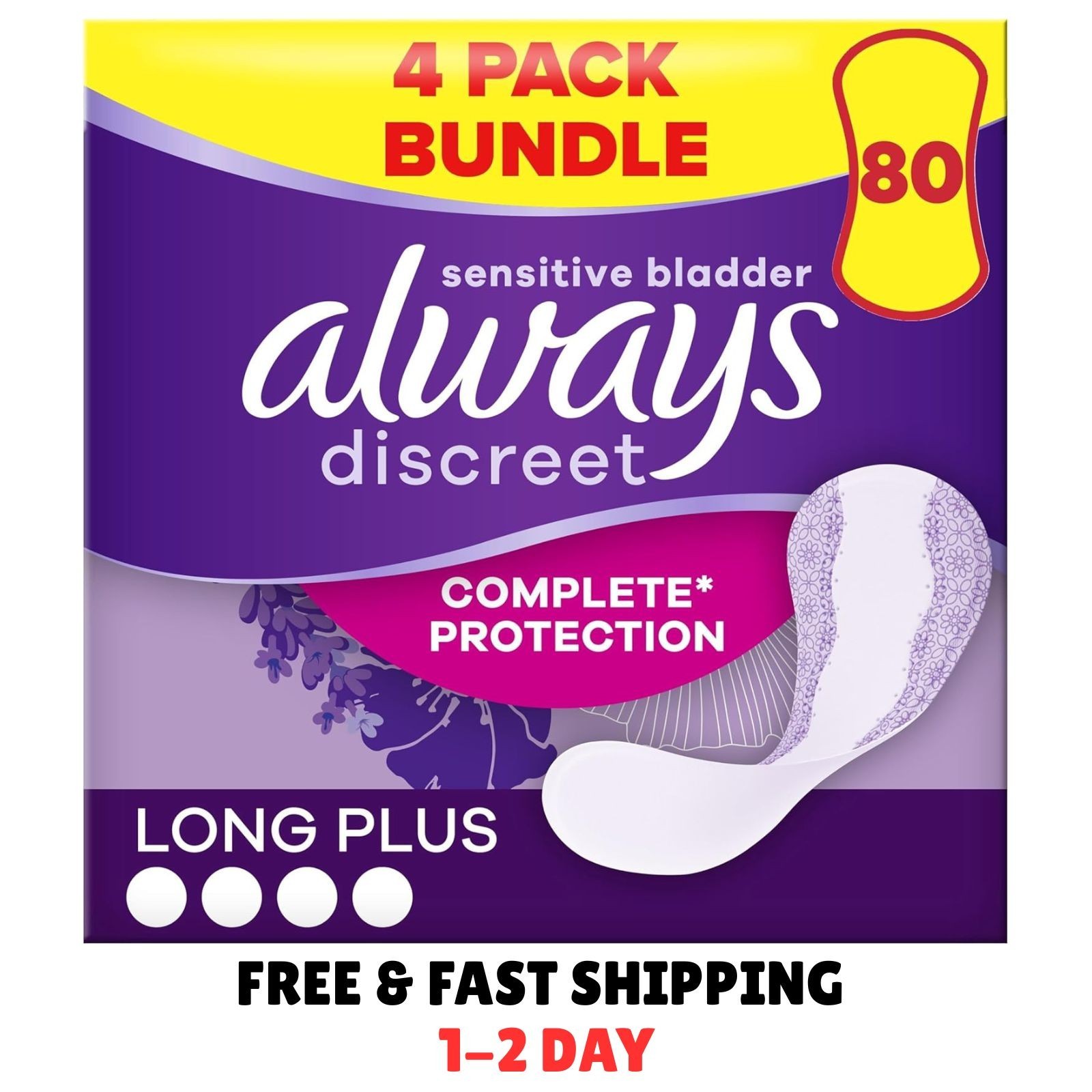 Always Discreet Incontinence Panty Liners for Women, Long Plus, 20 X 4 Packs