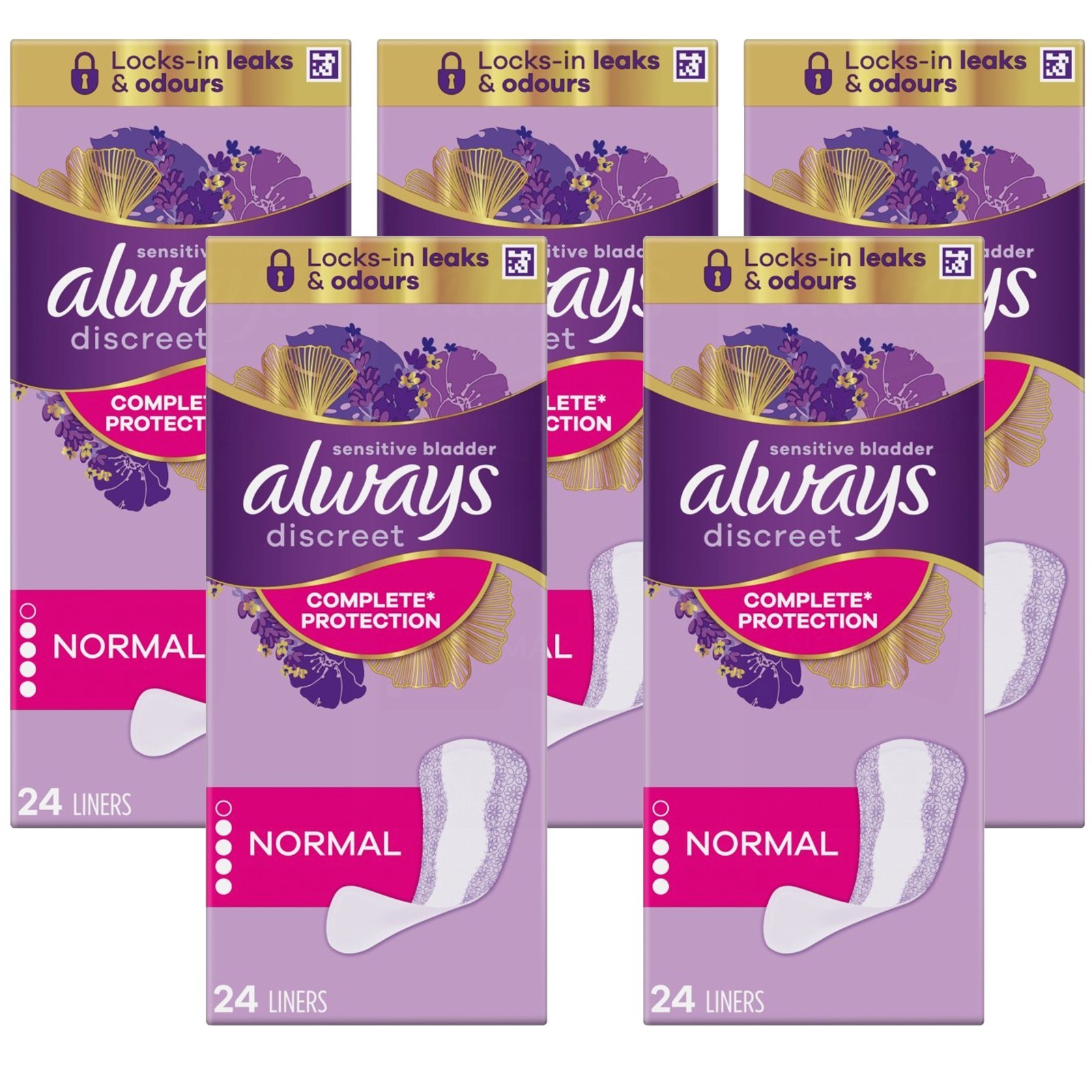 Always Discreet Incontinence Panty Liners for Women 24 Liners - Pack 5