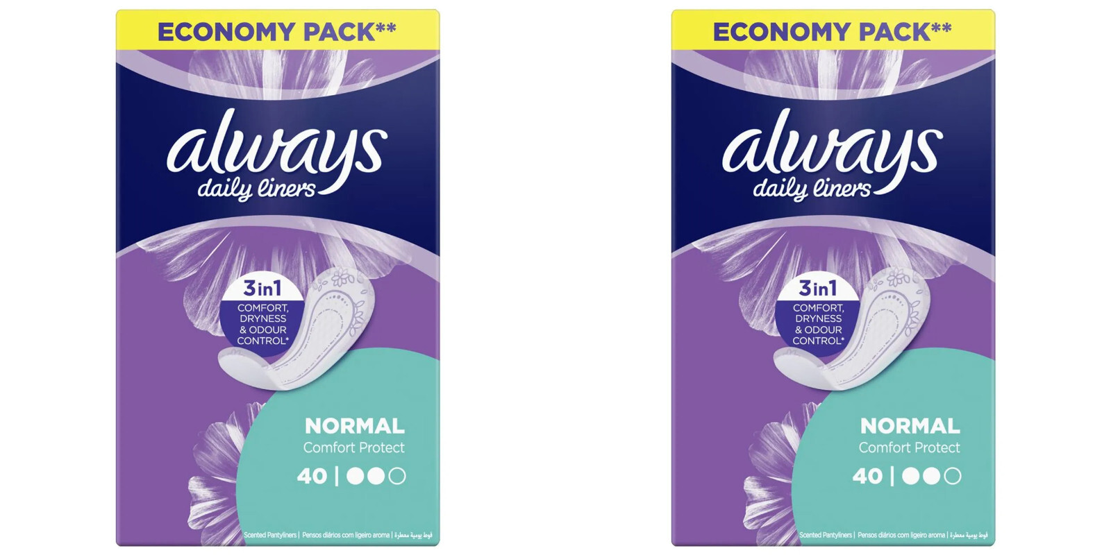 2 X ALWAYS DAILY PANTY LINERS PACK OF 40 NORMAL COMFORT PROTECT ODOUR CONTROL