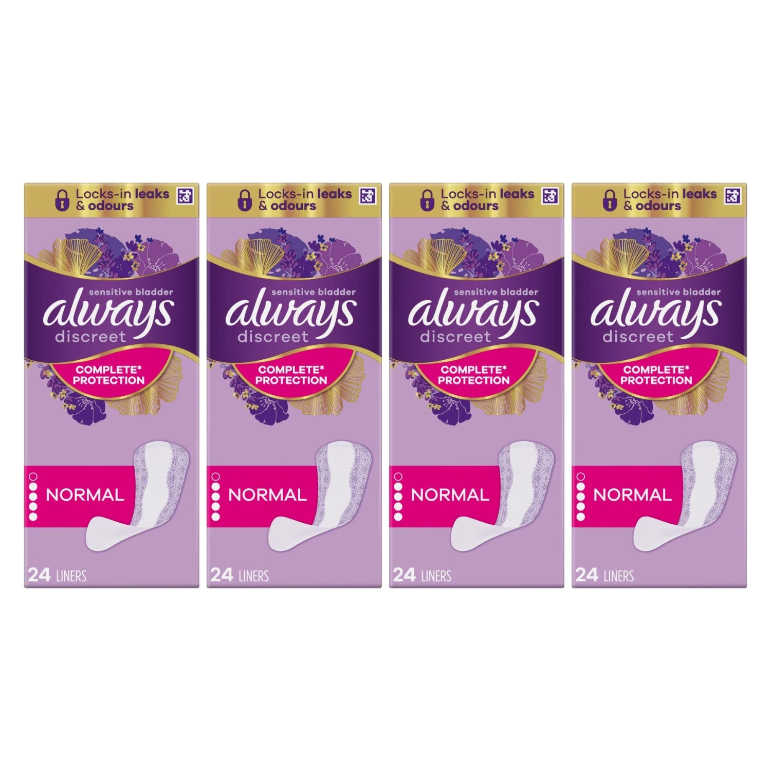 Always Discreet Incontinence Liners Normal Panty Liners 96 Liners 24 x 4