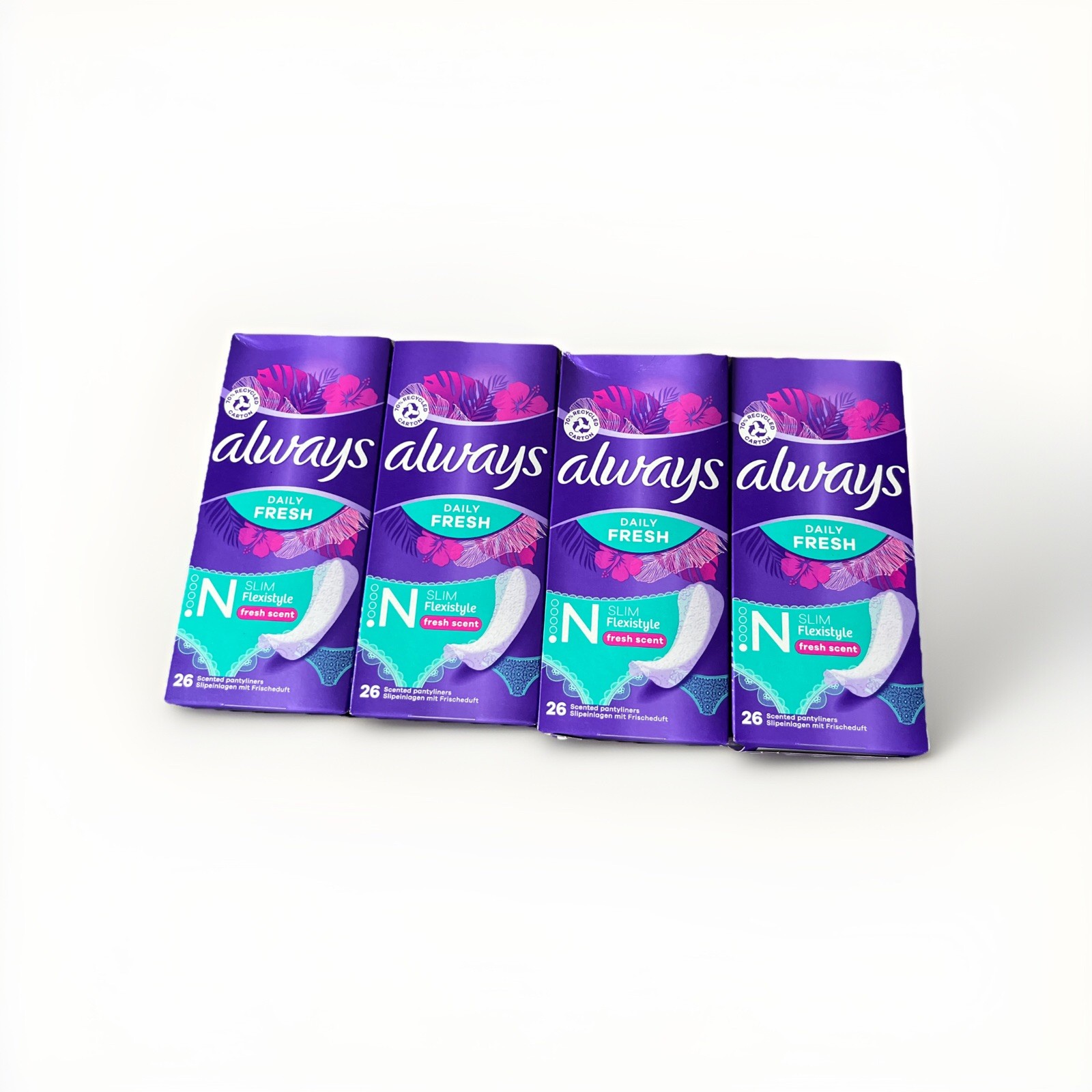 ALWAYS DAILIES FLEXISTYLE SLIM 26 PANTY LINERS X 4 Boxes