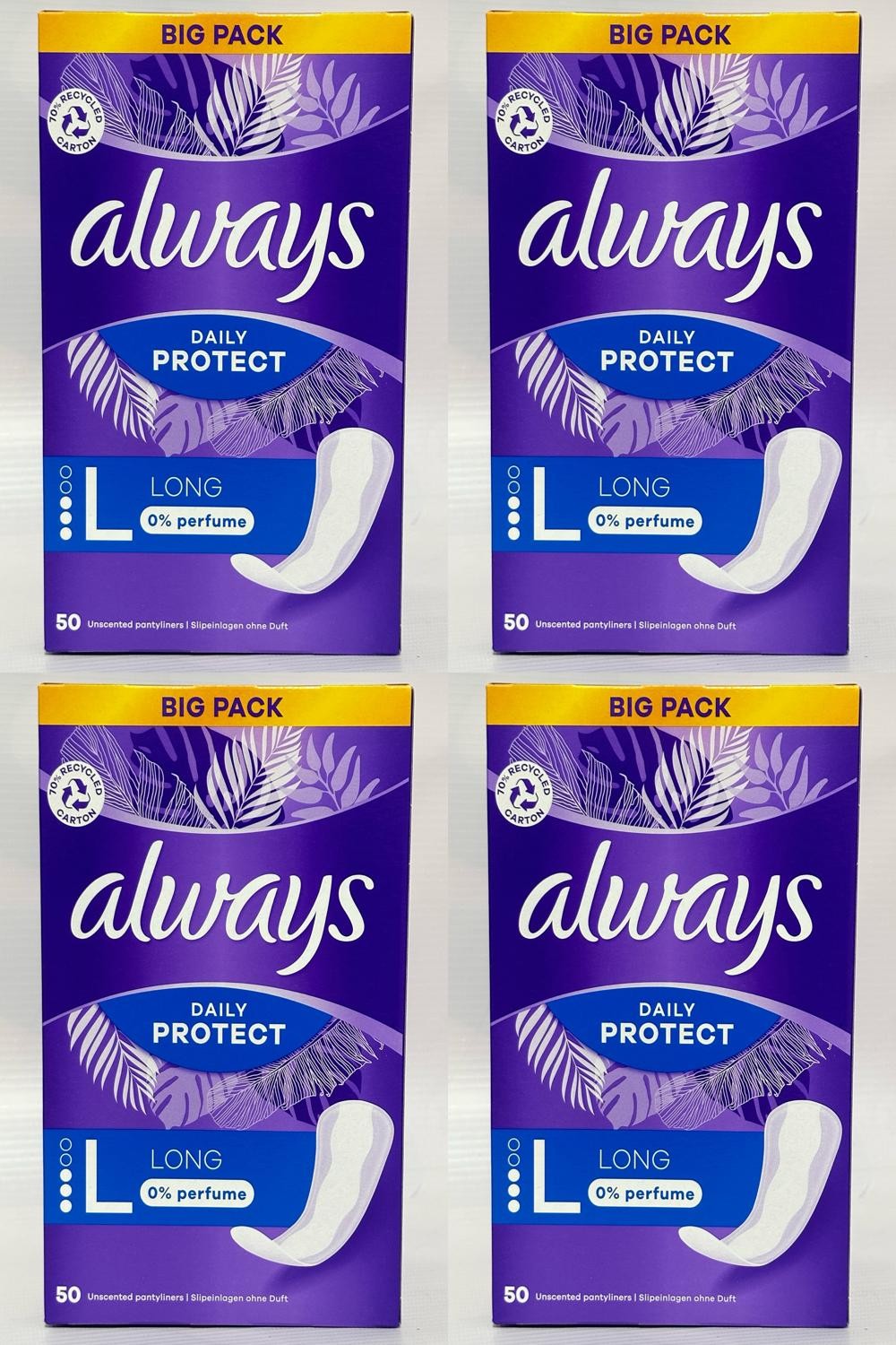 Always Daily Protect Long Panty Liners – 200 Liners (4 Packs of 50) Unscented