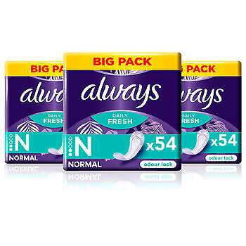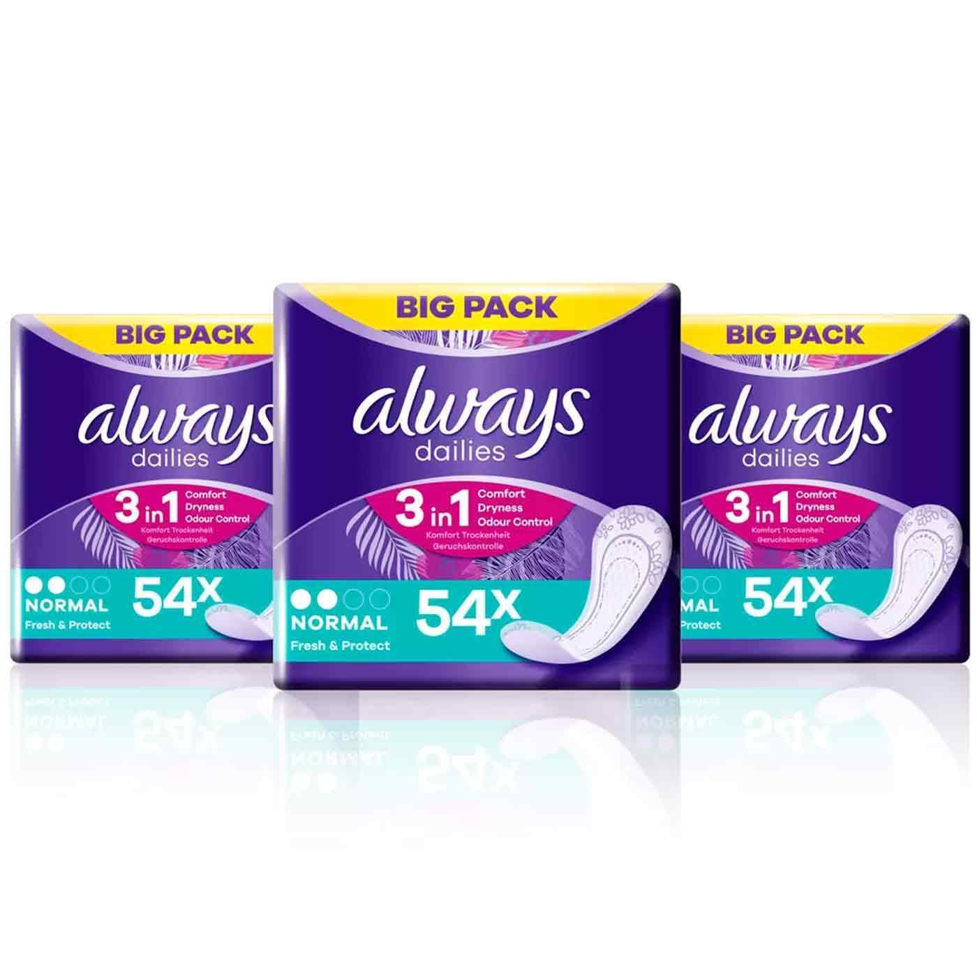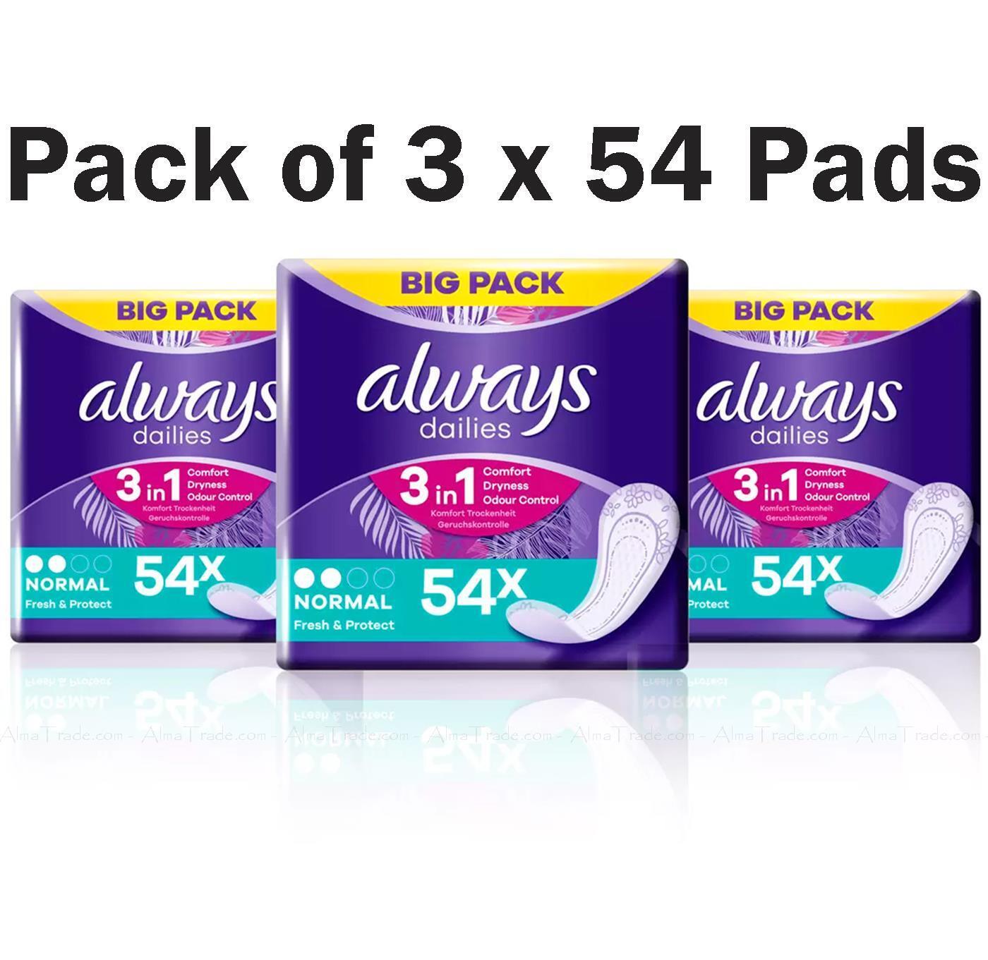 Always Dailies Panty Liners Normal Daily Fresh Protect Flexible Pack 3 x 54 Pads