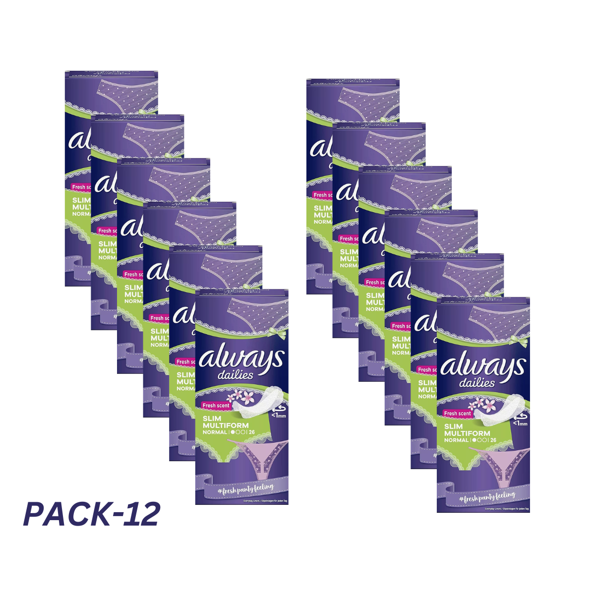 Always Daillies Normal Individually Wrapped Panty Liners, 20 Pads - Pack 12