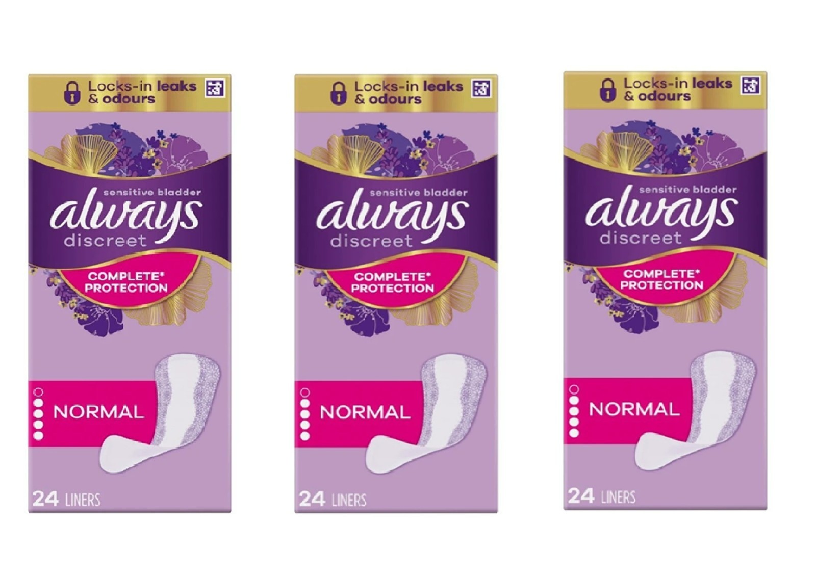Always Discreet Incontinence Panty Liners for Women, Normal 24 Liners 24 x 3