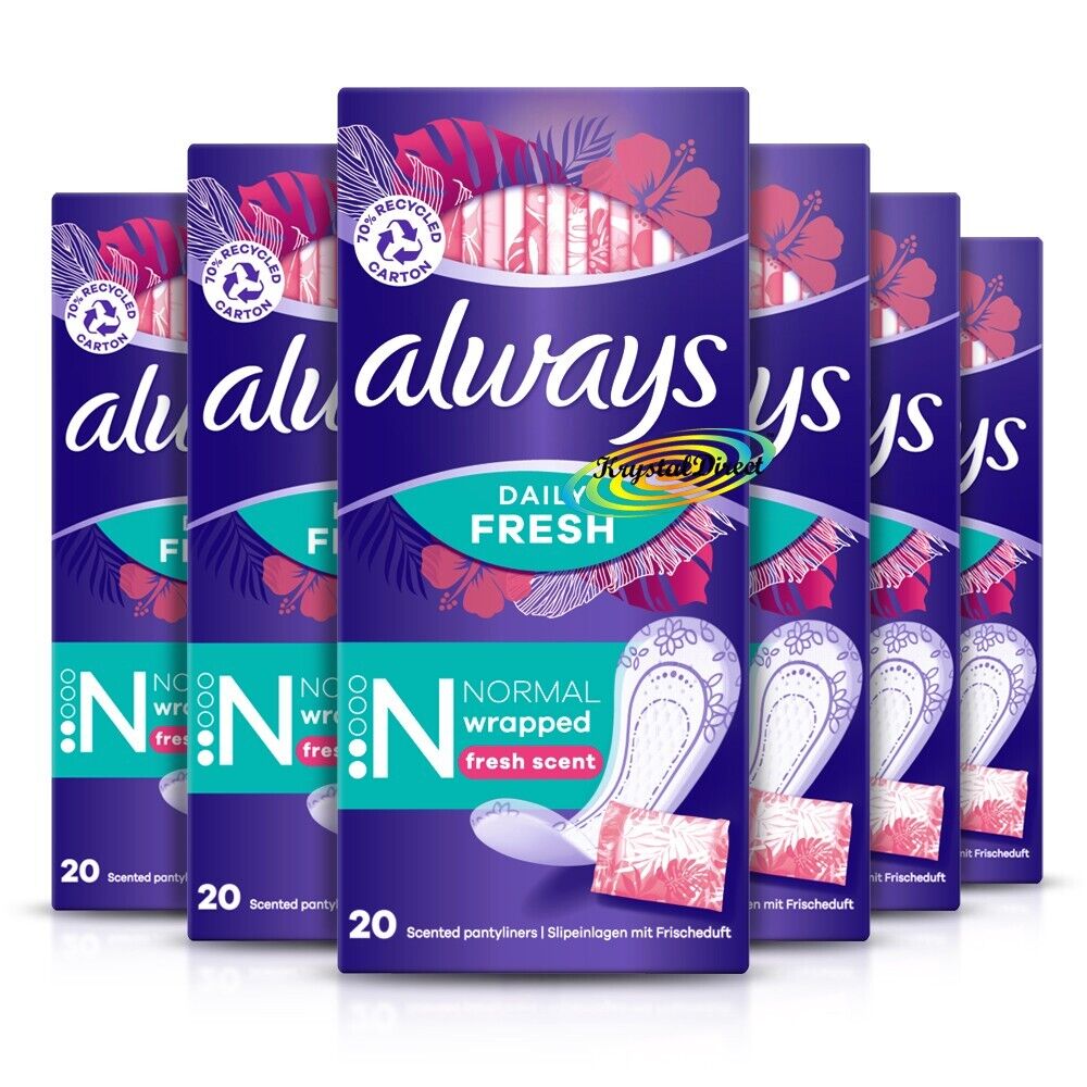 6x Always Daily 20 Fresh Normal Wrapped Fresh Scented Panty Liners