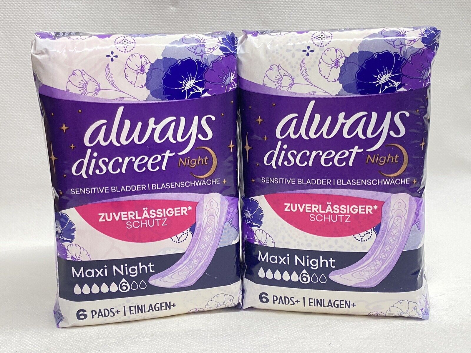 Always Discreet Maxi Night Incontinence Panty Liners, 2 X 6 Pads