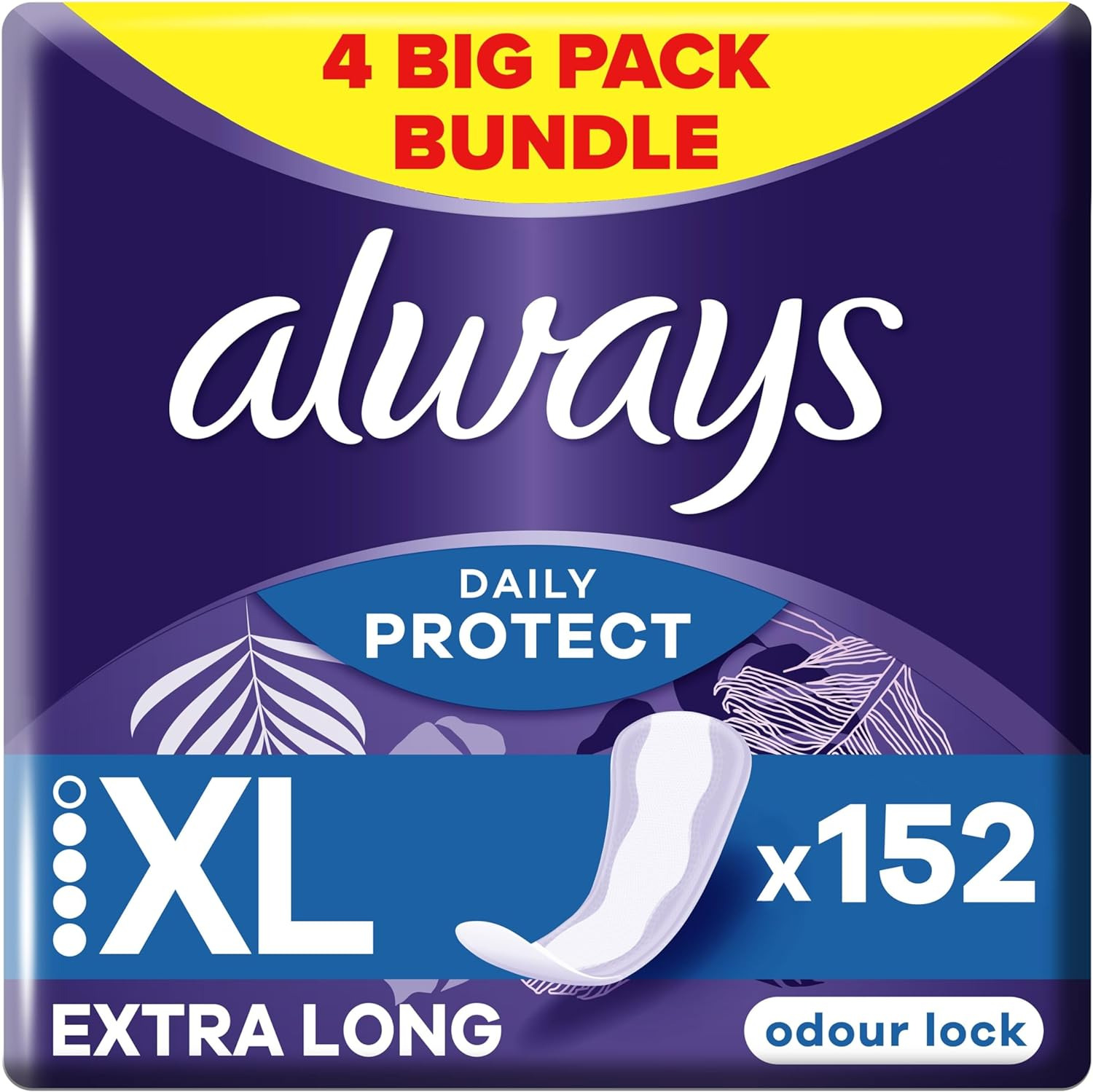Always Daily Protect Extra Long Panty Liners, Odour Lock, 4x38 Count, Comfortab