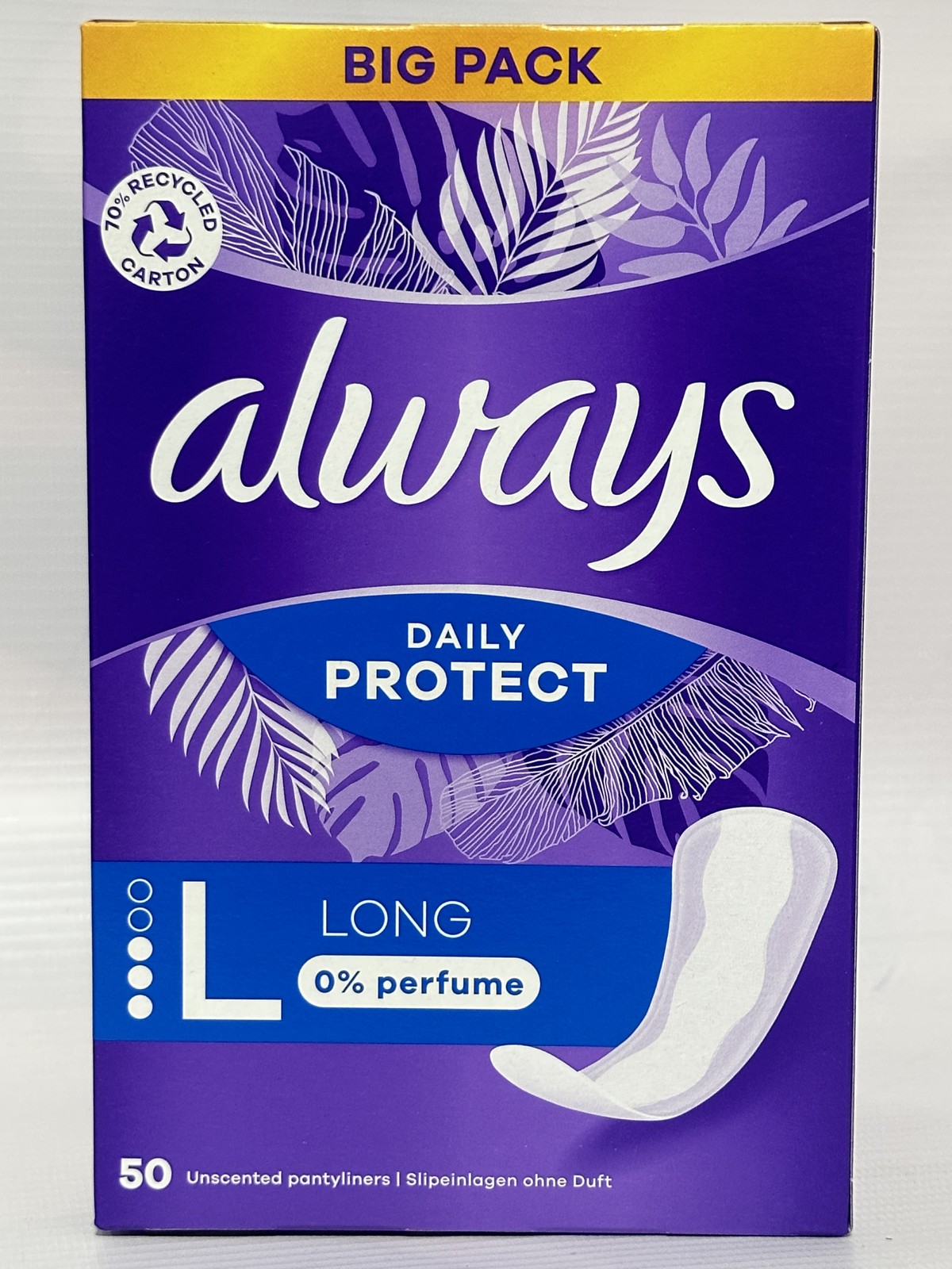 Always Daily Protect Long Panty Liners – 50 Liners | 0% Perfume & Odour Lock