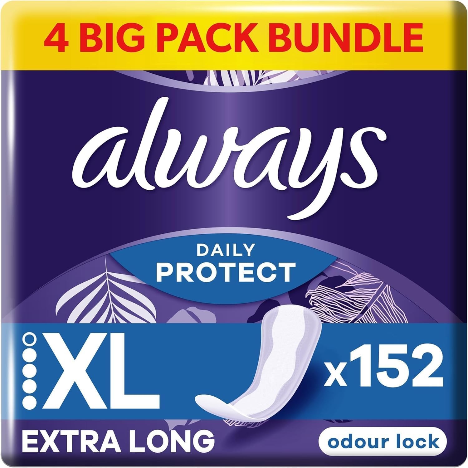 Always Daily Protect Extra Long Panty Liners, Odour Lock, 4X38 Count, Comfortabl