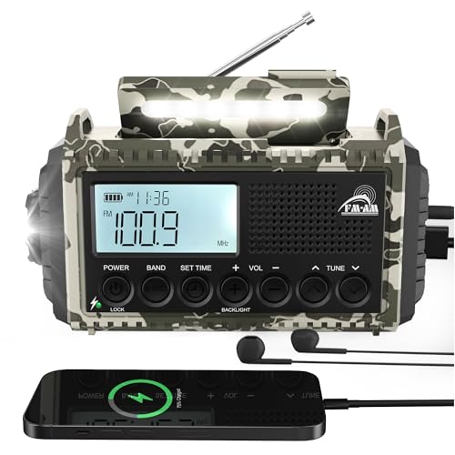 Mesqool Portable Wind Up Hand Crank and Solar Powered Radio with USB Phone Charger, Emergency Radio with SOS Alarm and Flashlight, AM/FM/SW Radio with 12000mAh Rechargeable Battery for Outdoor