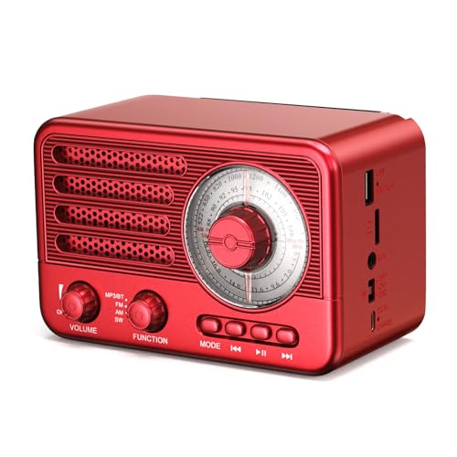 Retro-Transistorradio, batteriebetriebenes AM-FM-SW-Radio, kleines wiederaufladbares tragbares Radio mit 1800 mAh Lithium-Ionen-Akku, unterstützt TF-Karte/Aux/USB-MP3-Player