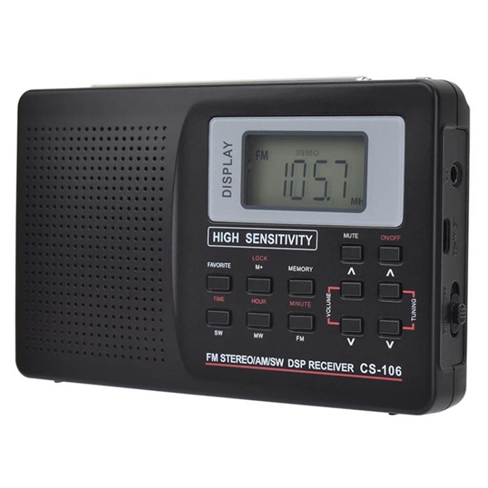 Songway Full Band AM/FM/SW DSP Radio Stereo Loudspeaker LCD Display Alarm Clock Sleep Timer Pocket Radio Digital Demodulation Best Reception with Telescopic Antenna (Black)