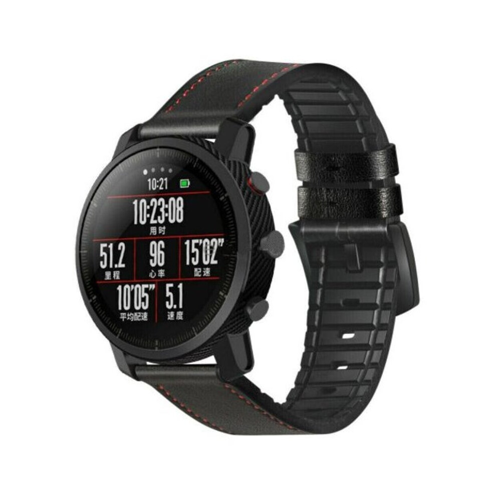 Leather Silicone Watch Band Strap For Amazfit Gtr 47Mm / Pace Stratos 2 2S Black Watch Bands