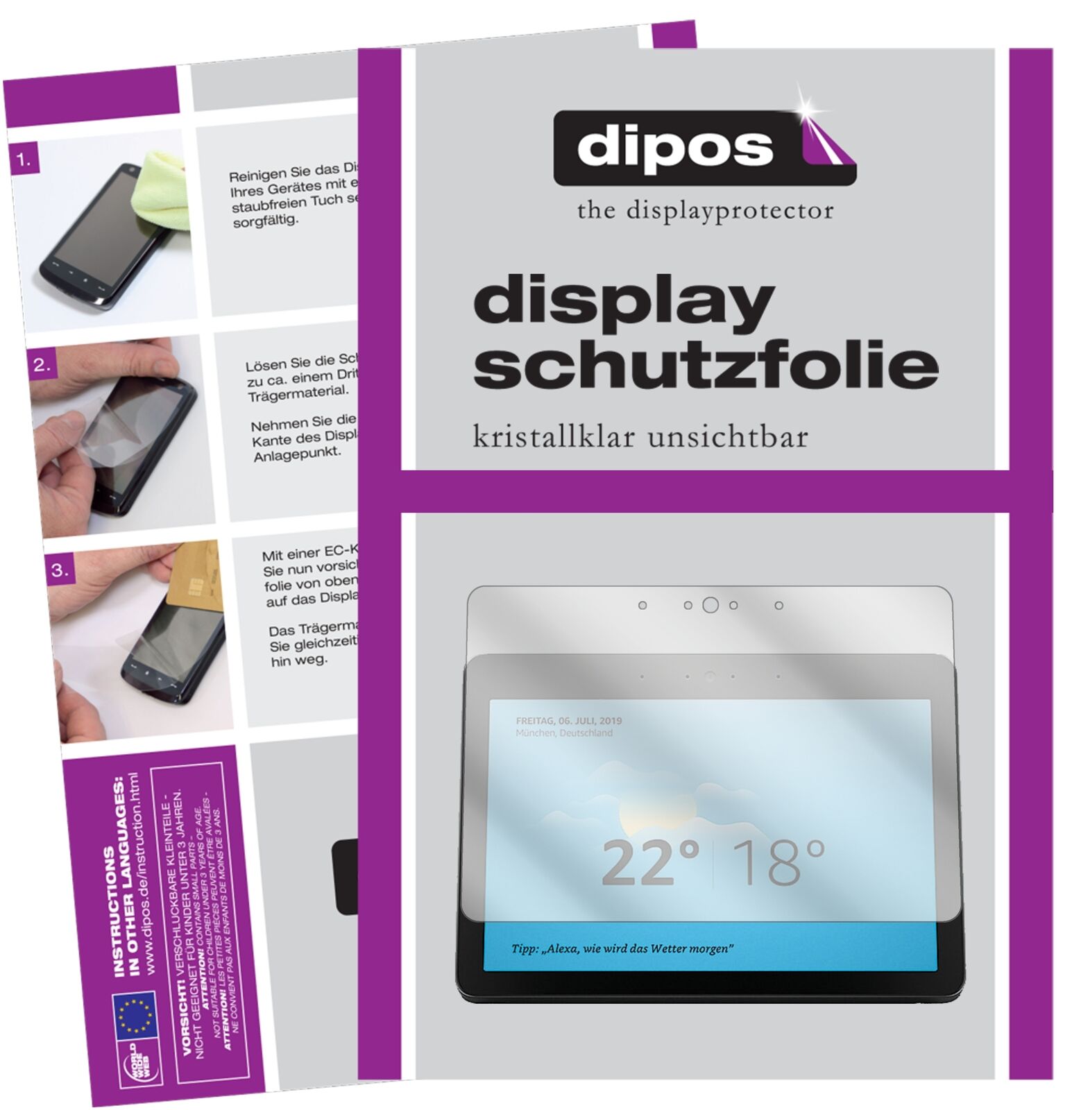 Screen Protector for Amazon Echo Show 8 1.Gen (2018) 4-Way Protection dipos