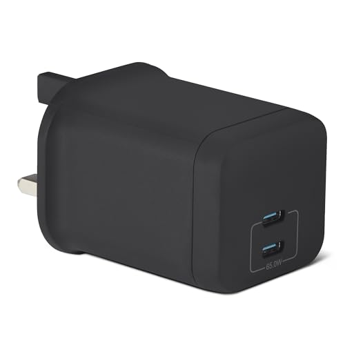 Amazon Basics Fast Charging USB C Nano GaN Wall Charger, 65W 2-Port for Laptops, Tablets, Phones, Black