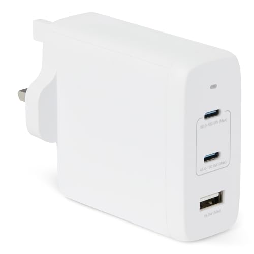 Amazon Basics Fast Charging USB C Nano GaN Wall Charger, 120W 3-Port for Laptops, Tablets, Phones, White