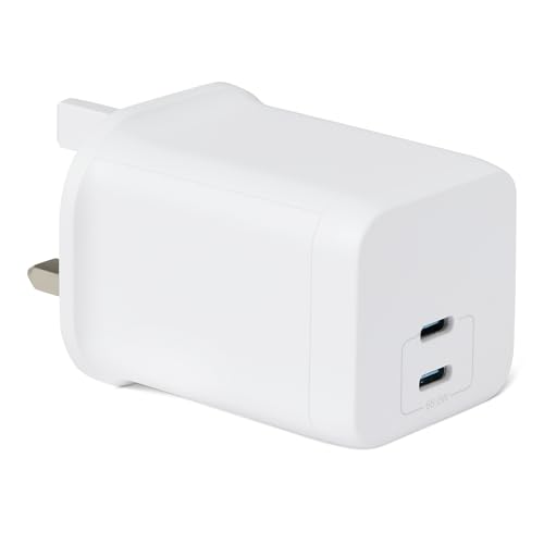 Amazon Basics Fast Charging USB C Nano GaN Wall Charger, 65W 2-Port for Laptops, Tablets, Phones, White