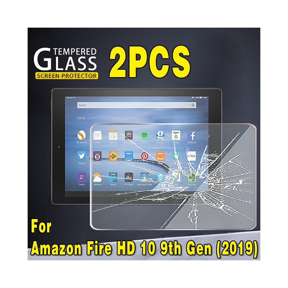 (HD 10 9th Gen 2019) 2Pcs Tempered Glass Screen Protector for Amazon Fire 7 5th 7th 9th 12th Fire HD 8 Fire HD10 2017 2019 11th 10 Plus Fire 10 Kids