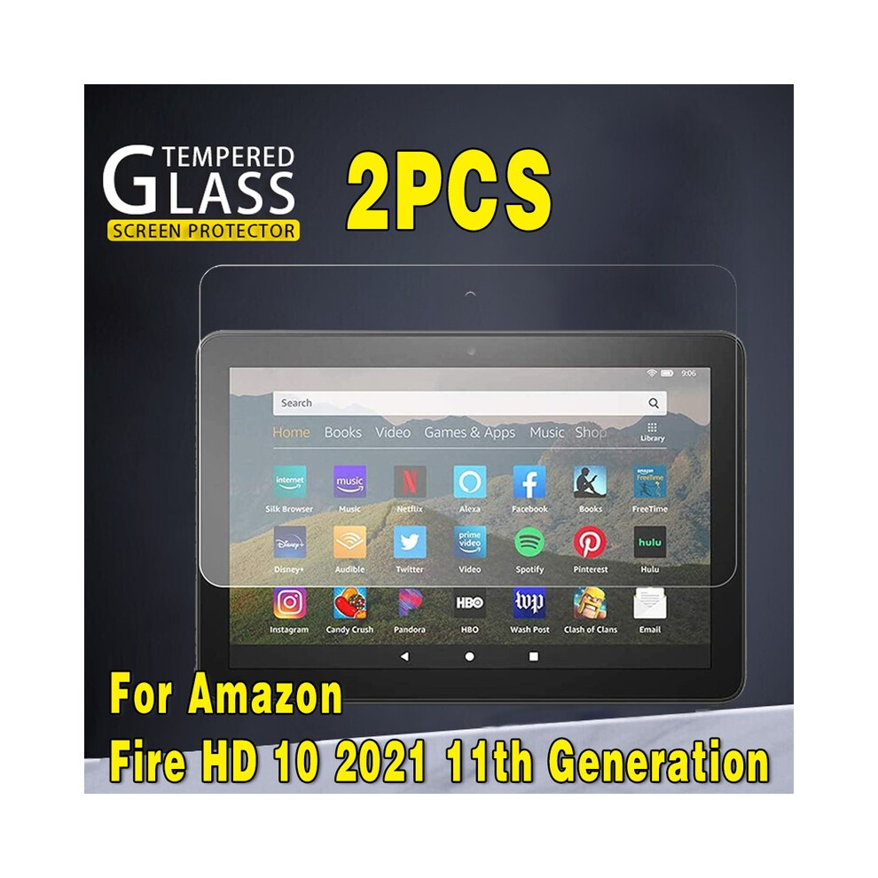 (HD 10 2021 11th Gen) 2Pcs Tempered Glass Screen Protector for Amazon Fire 7 5th 7th 9th 12th Fire HD 8 Fire HD10 2017 2019 11th 10 Plus Fire 10 Kids