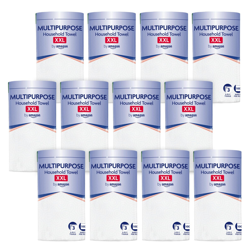 by Amazon Multipurpose Kitchen Roll 3Ply XXL Household Towel 12 Rolls Pack of 1 100 Sheets per Roll FSC Certified