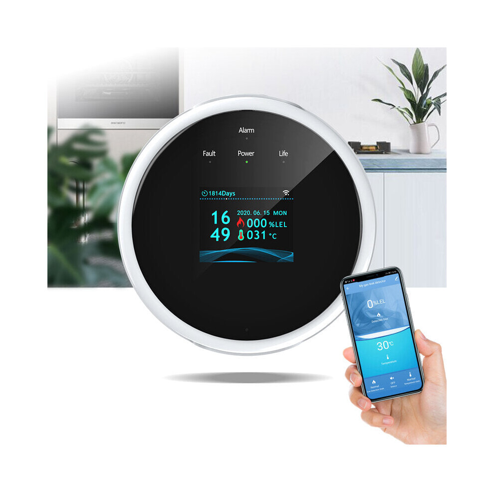 Wifi Natural Gas Sensor LCD Screen Household Smart Gas Alarm Detector Leakage Sensor Wifi Temperature Detectors Work with Amazon Alexa Google Home