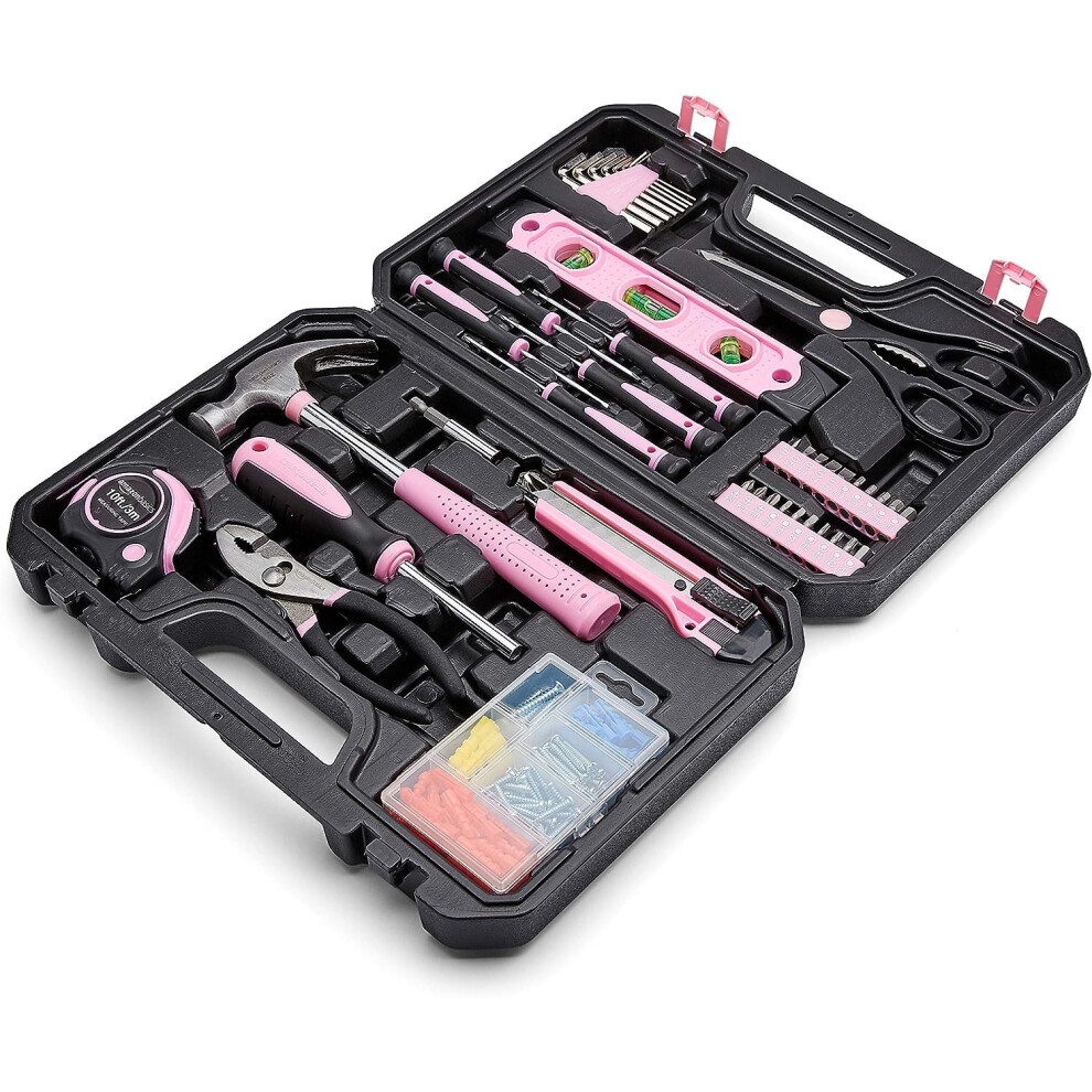 Amazon Basics DIY Household Tool Set With Storage Case 142 Piece Pink 13.39 x 9.25 x 2.95 inch